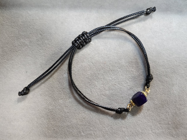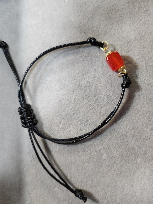 ワックスコードを編んで 長さの調節できるブレスレットです。 小ぶりなので、ほかのブレスレットと重ね付けするのも 可愛いですし、お子さまでも装着可能です。 人工のメノウとなります。 その事をご了承の上、ご購入ください。 サイズ表記 石の部分約0.5cm