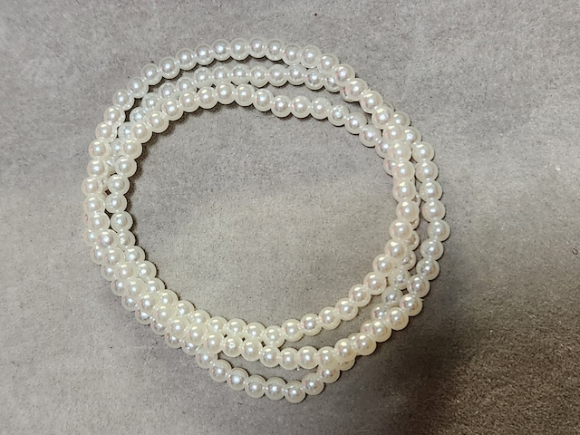 パールビーズの3連ブレスレットです ゴム仕様になっております。 サイズ表記 内径約16cmです。