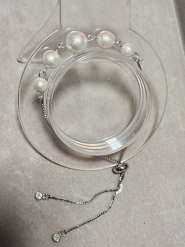コットンパールビーズで作ったブレスレットです。 ブレスレット部分は真鍮で作られたものになります 全ての人にアレルギー反応が出ない訳ではありませんので、ご理解のほどよろしくお願い致します( . .)"