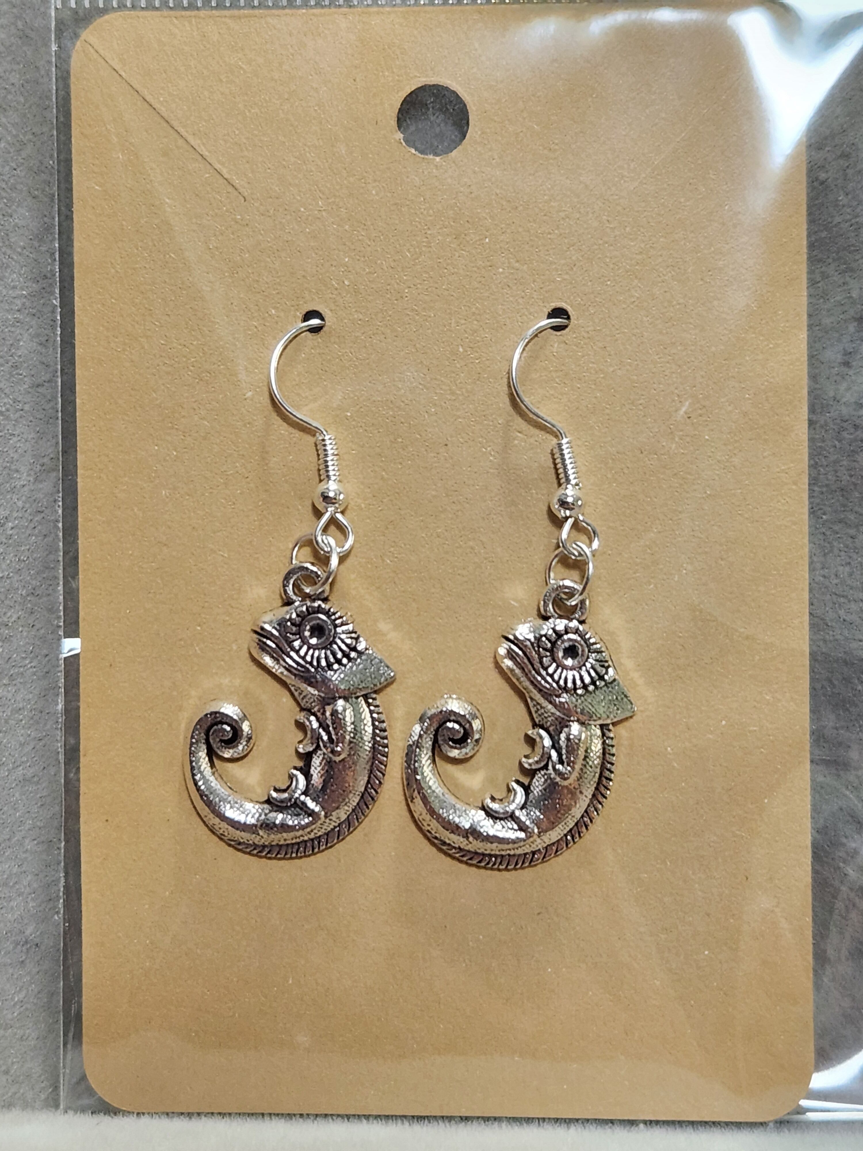 ユラユラゆれるカメレオンのピアスです♪