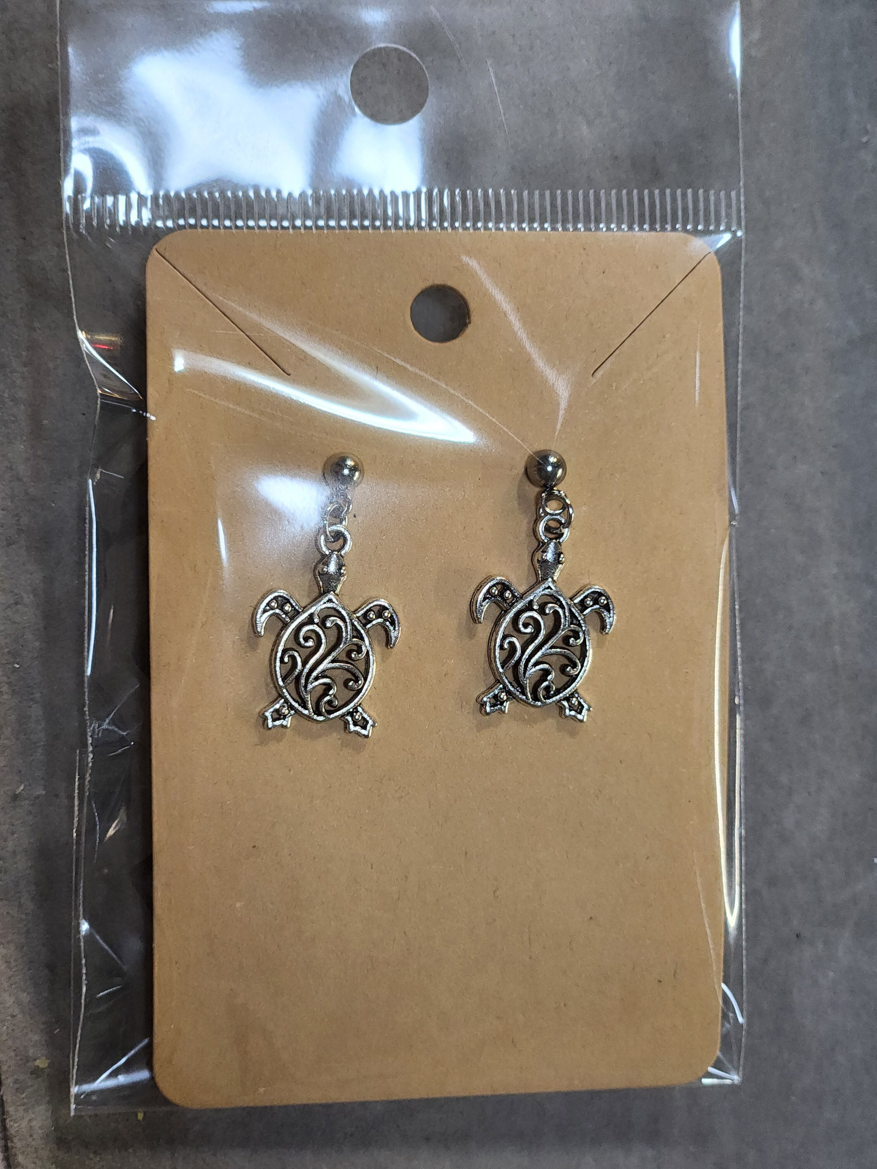 透かし模様の亀のピアスです。