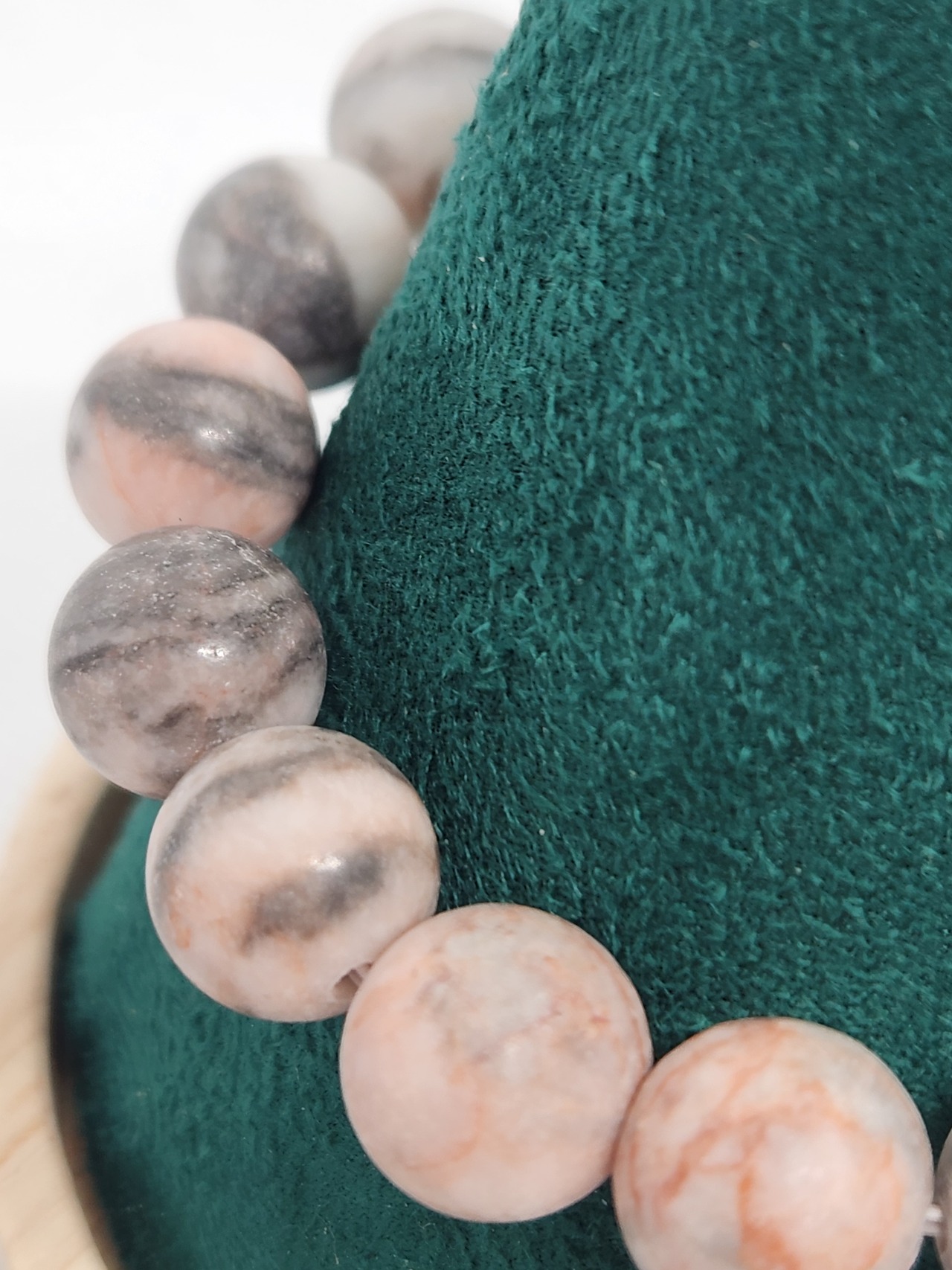 まるでシマウマのようなビジュアルの「ゼブラジャスパー」。 その歴史は古く、多くの災いから身を守ってくれるお守りや精神的や肉体的な疲れを癒すお守りとして利用されていたと伝えられています。 また、ヒーリング効果が高く、精神的な安心感や安定感をもたらし、悩みや問題などの解決へと導いてくれると言われています。